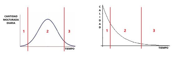 Deberíamos empezar a modificar estas curvas para que la curva de molturación se parezca lo más posible a la curva de calidad. Esto haría que los gastos disminuyeran, la calidad aumentara y como consecuencia, el cultivo fuese más rentable.